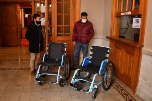 El Municipio recibió dos sillas de ruedas de traslado para uso de personas con movilidad reducida. El destino de las mismas será para quienes la requieran en los paseos guiados al turismo que brinda el Municipio de Lobos, como así también para asistencia dentro de la sala del Teatro Cine Italiano.