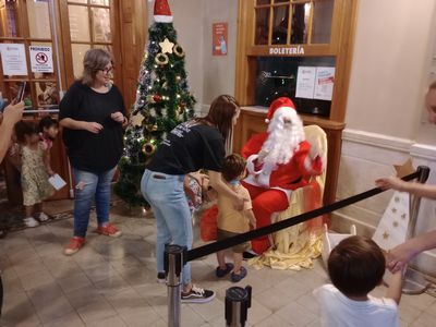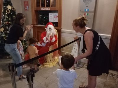 Anoche, la Dirección de Cultura había programado una serie de actividades con motivos navideños. Una de ellas, era un recorrido por el mercado artesanal del microemprendedores locales, haciendo peatonal el tramo de la 9 de Julio entre Buenos Aires y Ayacucho. Lamentablemente, cuando todo estaba dispuesto a dar comienzo en el horario que estaba previsto, una fuerte pero breve tormenta de lluvia y granizo azotó todo el casco urbano. Pero, precisamente, el hecho de que el temporal no durara demasiado, permitió que los stands y los gazebos continuaran siendo puntos de atracción para quienes visitaban el trayecto una vez superada la contingencia climática. Y los espectáculos artísticos que se iban a realizar en un escenario montado en Buenos Aires y 25 de Mayo, fueron trasladados al Teatro Italiano. En ese mismo lugar, a su vez, estaba Papá Noel, quien recibió cartitas y saludos de los niños, acompañados de sus padres que aprovecharon ese momento para capturarlo en fotos.