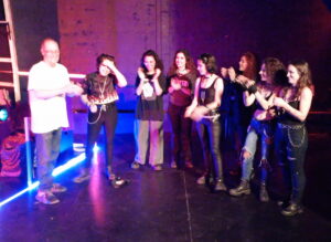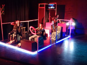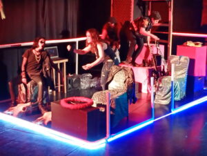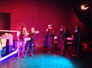 En la Casa de la Cultura, el grupo Maskaratores estrenó a sala llena “Tachas de buen metal”, de la lobense Belén Gatti. Con Dirección de Juani Lucesole, se trata de una puesta que se distingue por abordar la estética del heavy metal con lúcidas actuaciones de las siete protagonistas, que logran una gran química sobre las tablas. La música aparece como un ingrediente que otorga sustento a la trama, es un elemento clave que contribuye a forjar la identidad que adoptan las actrices a partir de la vestimenta, del lenguaje, de los códigos en común. El metal, además, brinda un sentido de pertenencia como parte de una subcultura que se caracteriza por una actitud irreverente y contestataria hacia lo establecido.