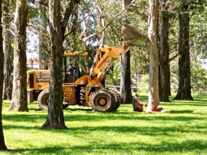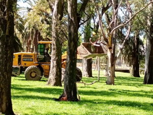 Dio comienzo en el Parque Municipal, tal como estaba previsto, la extracción de árboles secos, cuya remoción se considera prioritaria para garantizar la seguridad de los numerosos vecinos que visitan al espacio verde. Están trabajando en el lugar dos operarios de una empresa privada con maquinaria vial y motosierras, delimitando cada sector con cintas de peligro para que no ingresen peatones en la zona donde se están removiendo las especies.