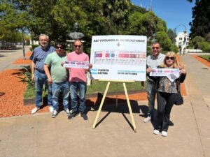 En la Plaza 1810, referentes locales de Fuerza Patria colocaron un stand en el cual informan a los vecinos cómo deberán votar con la nueva Boleta Única en Papel el 26 de octubre. Para ello, cuentan con réplicas de lo que será la boleta del día de los comicios, y con esa papeleta van explicando cómo cada uno puede elegir al candidato de su preferencia.