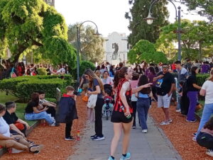 Lo que sí podemos afirmar, es que el festejo es esta oportunidad se realizó con moderación, lo cual siempre se puede lograr de una forma más eficiente si los menores tienen la compañía de un adulto responsable. Paulatinamente, ese objetivo se va consiguiendo. Así y todo, algunos que ya hace tiempo dejaron de ser niños y a simple vista no tenían nada que hacer allí, se excedieron con la nieve artificial, lo cual está fuera de lugar porque todos tienen derecho a pasar una tarde tranquila en la Plaza. Podría decirse que todo transcurrió con normalidad, al menos durante el tiempo que permanecimos en el predio.