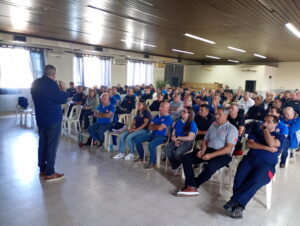En el salón de primer piso de la Sociedad de Bomberos Voluntarios, se está desarrollando una capacitación sobre Liderazgo a cargo de efectivos de la Federación Bonaerense, con la presencia del personal del personal del Cuartel local, como así también de toda la zona. Para conocer más sobre esta iniciativa, dialogamos con el Comandante Eduardo Jamur, jefe del Cuerpo Activo de nuestra ciudad, quien expresó: “Estamos muy contentos de poder recibir a bomberos de localidades vecinas, las disertaciones están relacionadas a los directivos que coordinamos este tipo de organizaciones. Hoy contamos con la presencia de referentes de la Academia Nacional de Bomberos Voluntarios, y en ese sentido hoy estamos recibiendo la información y la capacitación de liderazgo en estos nuevos tiempos, para lo cual nos hemos convocado 65 directivos de la Federación Bonaerense que estamos recibiendo este curso. La verdad es que en estos nuevos tiempos, con los cambios que ha habido en la modalidad, tenemos que readaptarnos para pensar cómo seguimos liderando este tipo de organizaciones”.