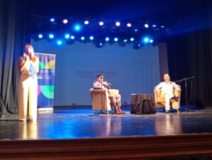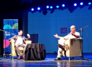 En la sala del Teatro Italiano, se presentó este miércoles el reconocido escritor Eduardo Sacheri, quien brindó una charla abierta con entrada libre y gratuita. Numeroso público se dio cita en el evento, promovido por la Fundación Osde y que contó con el acompañamiento del Municipio. En la primera parte, el autor trazó una reseña de su trayectoria con el moderador Pablo Sepúlveda, referente de la Fundación. Durante el desarrollo del conversatorio, Sacheri, Licenciado en Historia, relató cómo fueron sus primeros pasos en el mundo literario, con cuentos de fútbol que comenzaron a ser leídos por Alejandro Apo en Radio Continental cuando aún no había publicado ningún libro. La audiencia del ciclo radial se interiorizó por conocer quién era el escritor que cobraba vida en la voz de Apo, y esa experiencia fue el disparador para que comenzara a transitar un extenso camino, en el cual se fue afianzando en la consideración de los lectores hasta la actualidad. Muchos de esos textos que los oyentes de Continental escucharon por primera vez fueron incluidos en antologías, entre las cuales cabe mencionar: Aviones en el cielo (2011), Las llaves del reino (2015) y El fútbol, de la mano (2017).