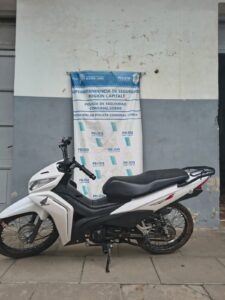 Asimismo, se incautó Honda Wave de color blanco que posee pedido de secuestro activo solicitado por Comisaría de Quilmes por el delito de Robo, rodado que se encontraba en poder de familiar del investigado. Se dio intervención a la Fiscalía de Saladillo quien tomó temperamento respecto a quien poseía la moto, notificando por el delito de Encubrimiento y posteriormente recuperó su libertad.