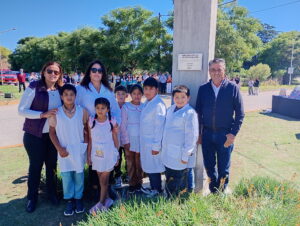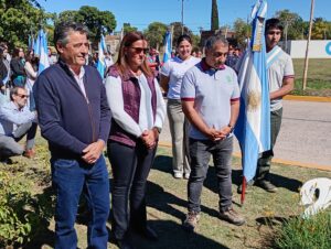 El acto comenzó con el Himno Nacional interpretado por Bianca Videla, tras lo cual el Intendente, la edil Soledad Rolandi, directora y alumnos de la Escuela Primaria 4, descubrieron una placa alusiva en el Monumento a la Memoria, en Moreno y Lisandro de la Torre. Posteriormente, las mismas autoridades junto a alumnos del CEPT 16 y el presidente del Consejo de Administración, Pablo Burgos, colocaron ofrendas florales