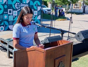 Paula Bernardoni, alumna del CEPT 16, fue la única oradora del acto, y en su alocución la joven expresó, entre otros conceptos: “Los alumnos queremos compartir una reflexión, porque quisimos pensar qué relación tiene esa fecha con nuestra vida hoy, especialmente en cómo vivimos en el CEPT, cómo nos tratamos con respeto, sinceridad e igualdad, ayudarnos entre todos, ser compañeros y saber que no siempre vamos a pensar igual, porque todos podemos opinar desde el respeto”.