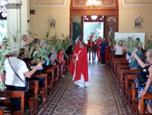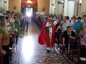 De acuerdo con el Evangelio, la población adornaba el camino del Hijo de Dios con ofrendas y cánticos. Por ello, a partir de este acto se origina el nombre de esta festividad religiosa y la costumbre de llevar ramos de olivos o palmas a las iglesias. En tal sentido, el Párroco subrayó la necesidad de traer la Gracia de ese momento que cambió la historia de la humanidad a nuestra vida de hoy. “Como comunidad parroquial, vamos a decir bendito el que viene en nombre del Señor, hosanna, no venimos a buscar un ramito bendecido como un amuleto para que nos proteja, el ramo se va a ir secando, pero lo que no se puede secar es la presencia de Cristo en nosotros, a quien proclamamos como su pueblo, desde hace más de 2.000 años. El centro de la celebración es Cristo vivo, y esta misa nos va a poner frente al Misterio de la Entrega de Cristo en la Cruz, al leer su Pasión”.
