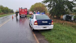 Según el informe de la Policía Vial, bajo una lluvia torrencial, hace instantes se tomó conocimiento de un accidente en Ruta 41 km. 192. Por causas que se investigan un Peugeot modelo 307 ptte. AA307GP cuyo conductor era Simón Álzaga y su acompañante Santiago Della Schiava, ambos con domicilio en Lobos, se despistó y posteriormente se produjo un vuelco quedando en el sector banquina. A raíz del impacto, ambos ocupantes fueron asistidos en el Hospital Navarro, donde se constató que no presentaban lesiones de gravedad.