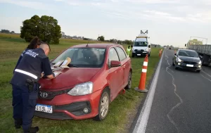El hombre se bajó a cambiar una cubierta pinchada y un transporte que circulaba lo arrolló, ya que el vehículo –un Toyota Etios rojo– había quedado a pocos centímetros de la cinta asfáltica.